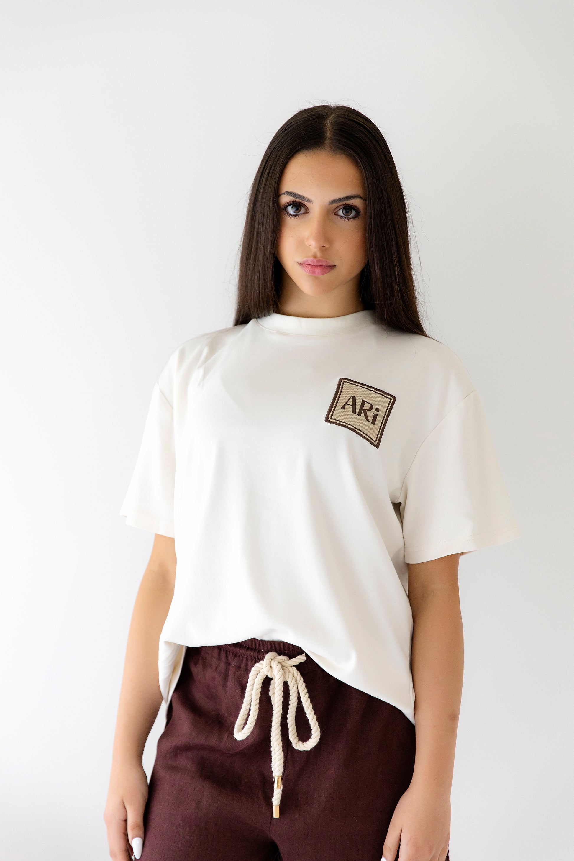 Experience everyday comfort redefined with the Patch Tee. Crafted from premium soft, heavyweight cotton, it offers durability and a plush feel. The oversized fit and subtle drop shoulder provide effortless layering and a modern silhouette. Finished with Ari’s signature patch in contrasting chocolate tones, this tee brings a refined, distinctive detail to a wardrobe staple. Model wears XS