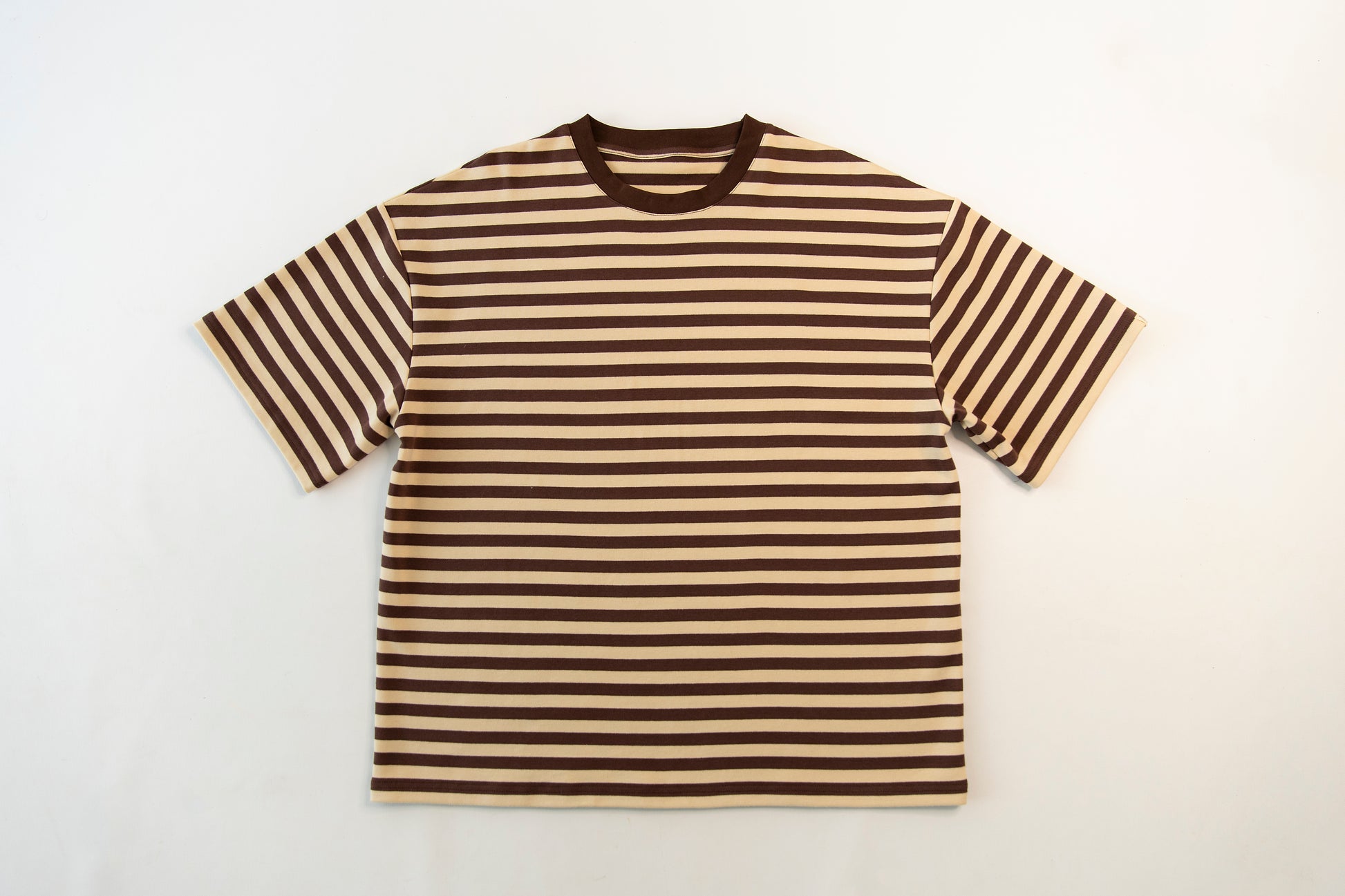 A modern take on a classic stripe, the Boxy Oversized Choc Crème Tee combines rich chocolate tones with a soft cream contrast for an effortlessly refined look. Crafted from a premium heavy-weight cotton blend, it offers a soft hand feel with a semi-structured drape and just the right amount of stretch. Designed for everyday comfort and versatility, it’s an elevated essential that stands out through subtle detail and quality craftsmanship.